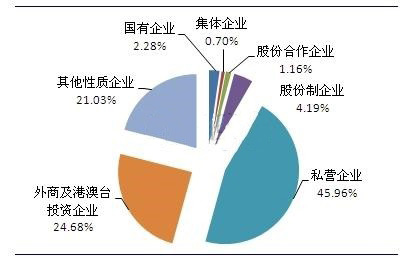 國有企業數量占比2.28%;股份合作企業和集體企業數量占比分別為1.16%和0.70%。