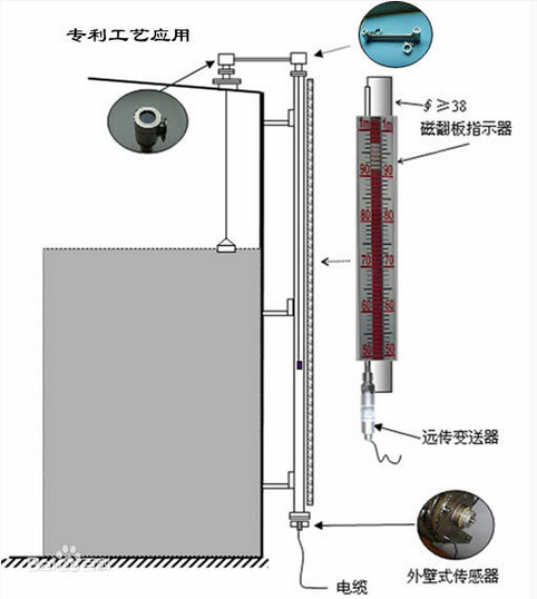 安裝方法四:與磁翻板液位計配套應用時的安裝方法